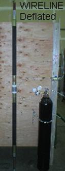 This positions both packers and protects the drill bit. A compression cap on the Seal Tee Assembly prevents pressure loss around the composite cable during testing. The composite cable itself is composed of a high pressure nylon tube for inflation and a cable to lower and retrieve the wireline packer.